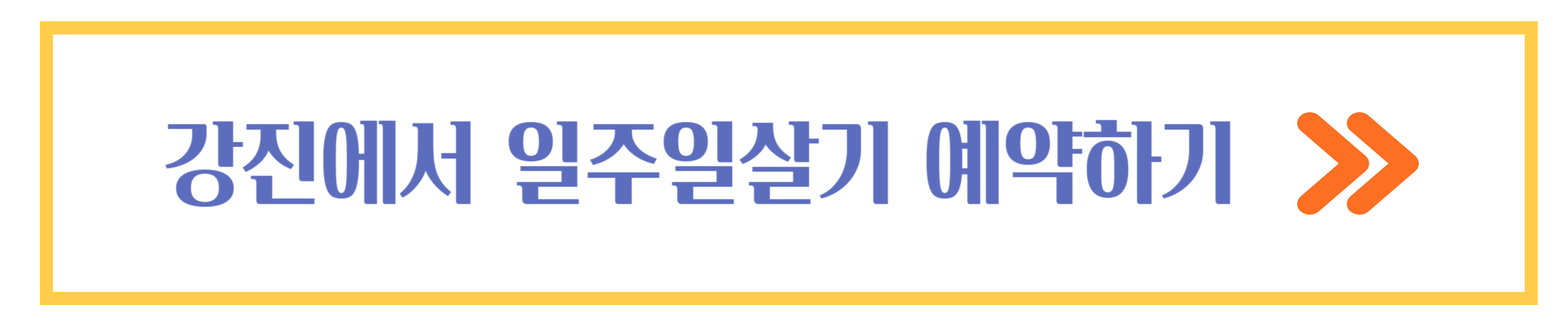 강진에서 일주일살기 예약은 참가인원 2인이상 신청가능하며, 참가비는 1인 34만 원이며, 시작일은 화요일과 금요일입니다. 단, 2024년 2월 ~12월까지는 50% 할인된 가격 17만원에 이용하실 수 있습니다
