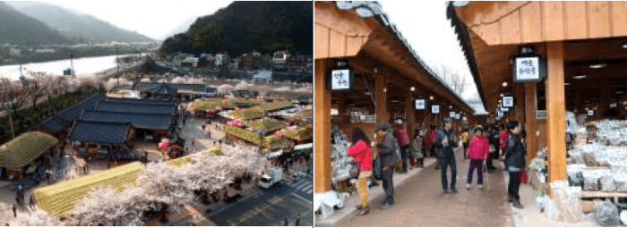 김동리의 소설 역마의 배경이 된 곳으로도 유명한 곳으로, 화개장터는 지리산에서 시작한 화개천과 섬진강이 합류하는 지점에서 열리던 전통적인 재래식 시장입니다. (최근에는 상시시장이 개장되어 5일장이 따로 서지 않음)